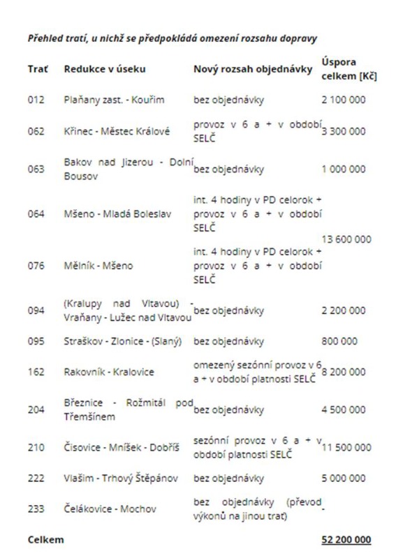 Středočeský kraj - S analýzou provozu na málo využívaných lokálních tratích na území Středočeského kraje se dnes seznámili středočeští radní. Odsouhlasili záměr zefektivnění veřejné dopravy a převedení výkonů z málo vytížených železničních tratí na autobusovou dopravu. Celková předpokládaná finanční úspora by měla dosáhnout cca 52 milionů korun. Rada kraje uložila radnímu pro oblast veřejné dopravy Petru Boreckému tento záměr kraje představit a projednat se zástupci samospráv dotčených obcí.