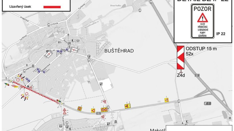Pro směr Praha bude v tomto období vhodné užít především jinou trasu, např. na D6 přes V. a M. Přítočno nebo V. Dobrou, případně na D7 přes MČ Vrapice.