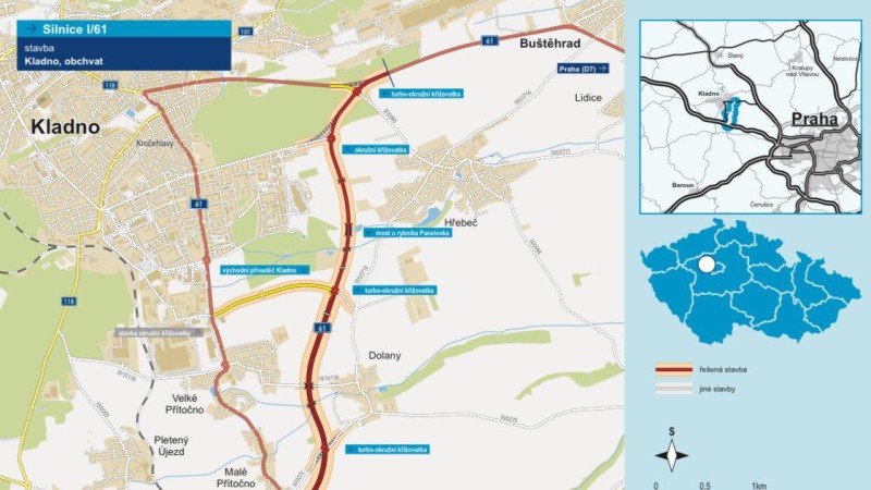 "Ministerstvo dopravy potvrdilo právní moc územního rozhodnutí na stavbu “I/61 Kladno, obchvat”, kdy zamítlo sedm podaných odvolání. Na stavbu délky 5,2 km je zpracován koncept DSP a zahajuje se majetkoprávní činnosti a v 1. polovině příštího roku plánujeme požádat o vydání," uvedl Radek Mátl, generální ředitel Ředitelství silnic a dálnic.